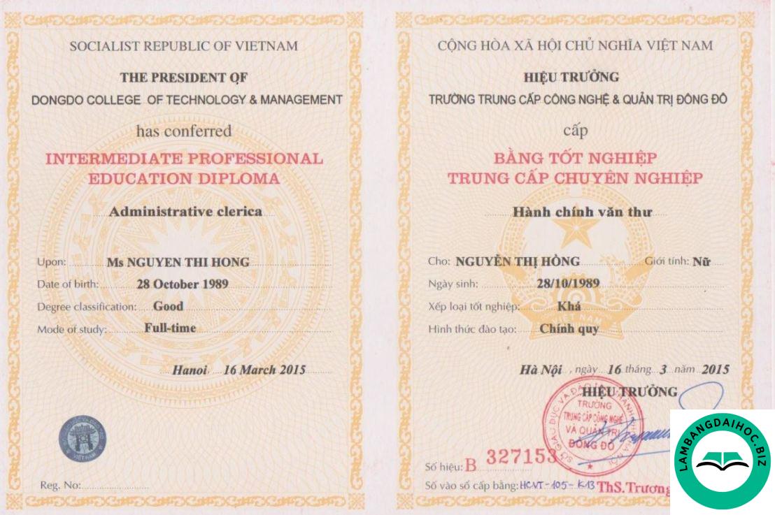 Hiện tại Làm bằng đại học rẻ chúng tôi cung cấp dịch vụ làm bằng trung cấp giá 2 triệu – 7 triệu đồng, tùy vào mức độ phức tạp của người mua yêu cầu mà có mức giá khác nhau như: thời gian hoàn thành, có hồ sơ gốc hay không ? Có giao bằng trực tiếp hay không ? Nhu cầu mua bằng trung cấp để đối phó gia đình hay xin việc hay dùng việc khác.